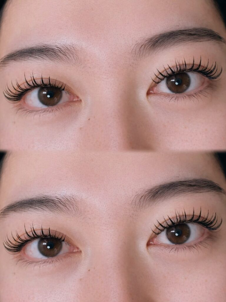 毛流れを活かしたHBLと、根元から立ち上がるまつげパーマ。